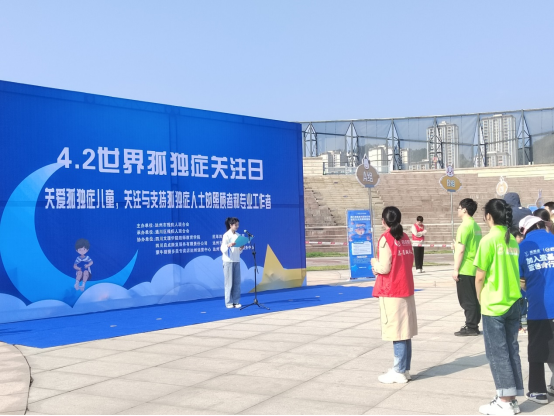 在世界第16个孤独症关注日来临之际,为动员全社会力量关心帮助孤独症人士,4月1日上午,mg4355vip官网特殊教育专业师生参与由达州市残疾人联合会主办的达州市2023年世界孤独症关注日主题宣传活动“爱让世界蓝起来—蓝色行动”。本次活动在巴山大剧院广场举行,70余名孤独症儿童及亲属、社会志愿者共计200余人参加此次活动。