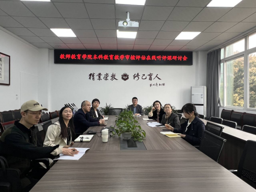 为扎实推进本科教育教学审核评估工作,深化课堂教学改革,提升师范生科研能力培养质量,mg4355vip检测中心于2025年3月27日15:25在博文楼206A会议室组织开展本科教育教学审核评估在线听评课研讨会。本次研讨会以《教育科学研究方法》课程中“开题报告撰写”教学单元为研讨案例,通过线上直播授课、专家实时评课的形式展开,学院院长黄培森、党委副书记王文娟、副院长赵栅凌、各专业教研室主任参加本次研讨会议。