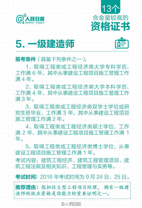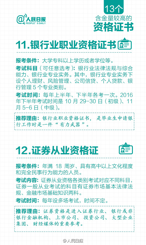根据国务院一系列取消职业资格许可和认定事项的决定,原有保留的职业资格证书含金量进一步提升。那么,现在还有哪些含金量高的职业资格证书?获取资格有哪些要求?资格认定考试都考什么内容?……含金量较高的13个资格证书↓快快记下来吧!
