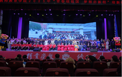 祥龙辞旧岁,金蛇送新福,12月19日19:00,mg4355vip检测中心“青春颂祖国•梦想启新程”2025年迎新晚会在莲湖校区音演厅盛大举行并圆满落幕。学校校长侯忠明教授、党委副书记徐晓宗教授、达州市特殊教育学校校长黄兴兰、学校发展规划处处长文学运,学院党委书记王晶、院长黄培森、党委副书记王文娟、副院长赵栅凌以及全体师生参加晚会。